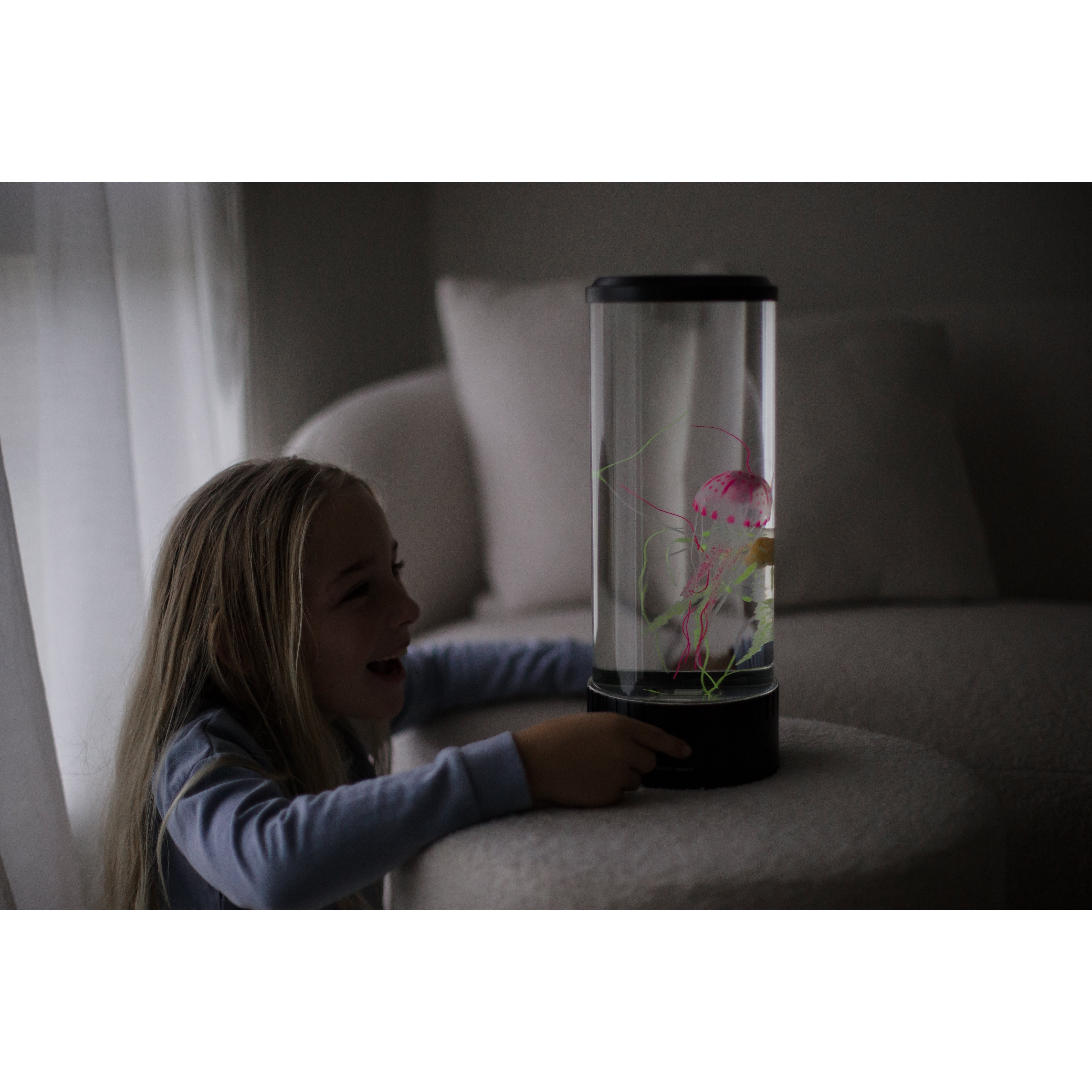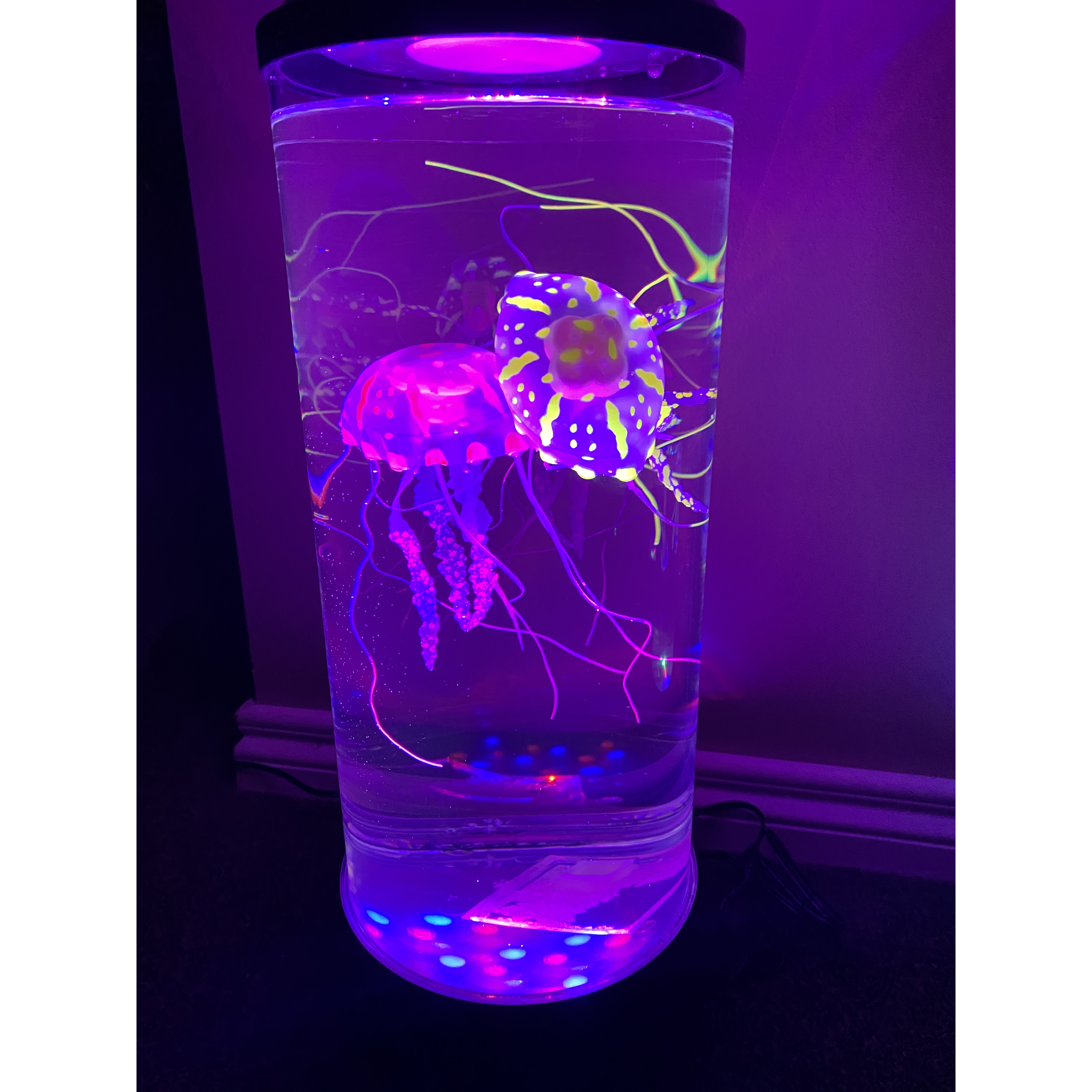 The Jellyfish Lamp is designed to stimulate the senses, with its gentle and soothing light with your choice of five different colours or cycling through all colours. The sensory experience is enhanced by the lifelike movement of the jellyfish inside the lamp, creating a calming and peaceful atmosphere.